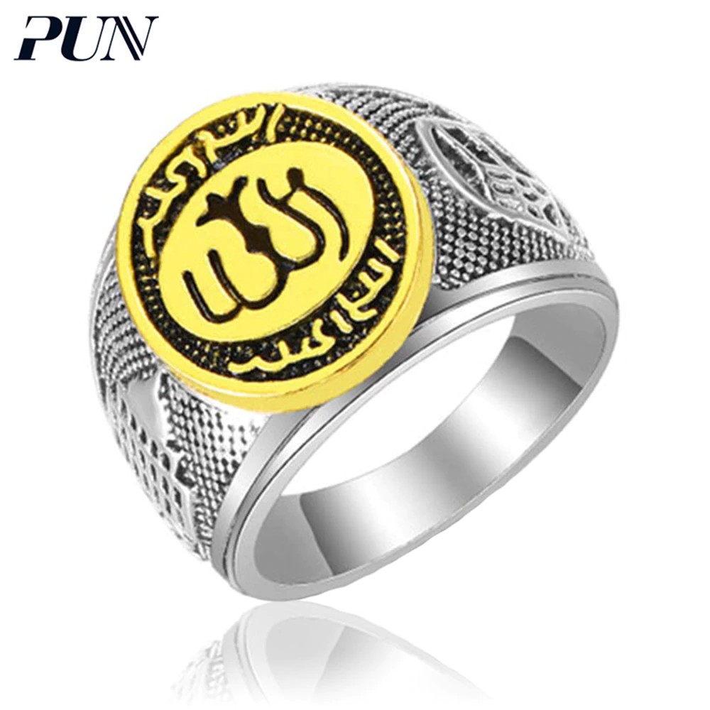 Pun Male Finger Silver Steel Vintage Big Antique Gothic Muslim Islam Allah Personalized Ring Gold