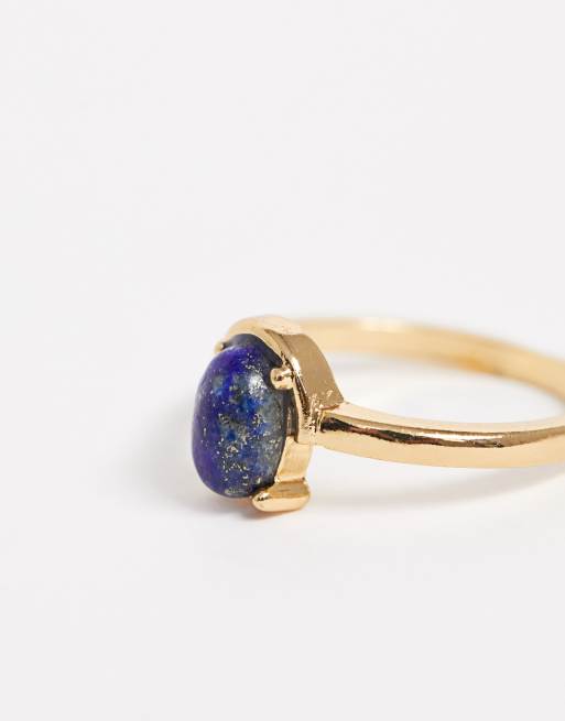 Asos Design Bague D Auriculaire Avec Pierre Semi Precieuse En Lapis Dore