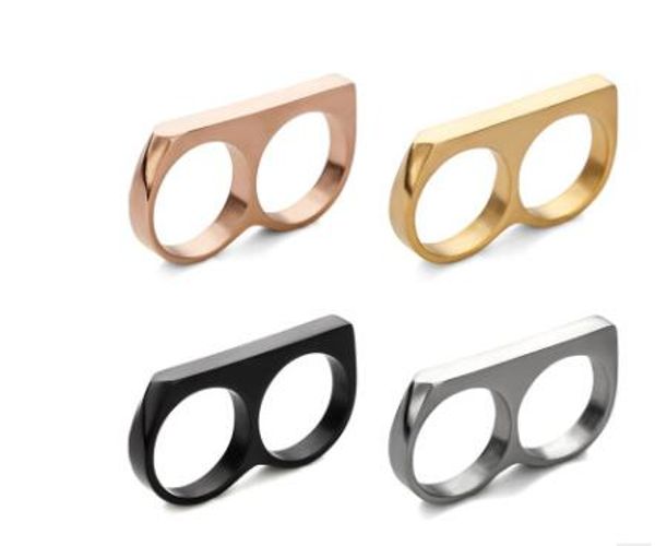 Deux Doigts Double Anneau En Acier Inoxydable Hommes Hip Hop Style Bague Bijoux En Or