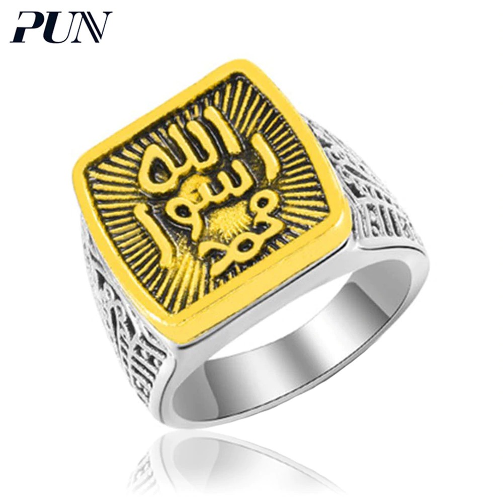 Pun Mens Signet Rings For Men Steel Jewelry Accessories Bts Muslim Islam Allah Vintage Antique