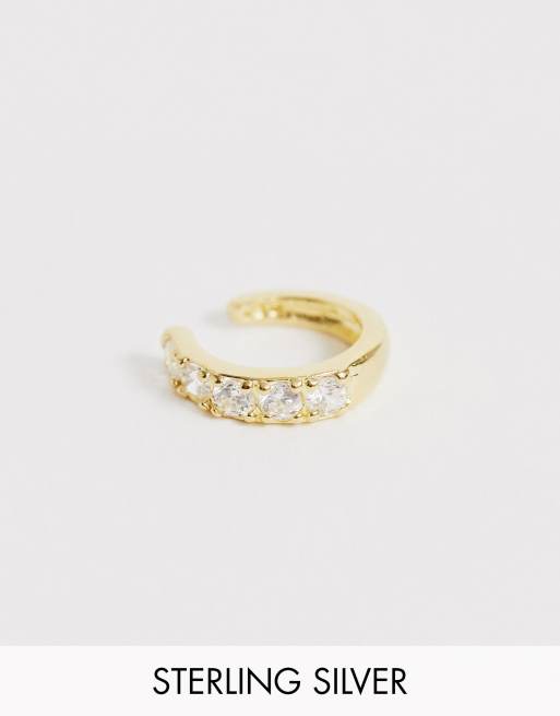 Asos Design Bague D Oreille En Argent Massif Plaque Or Avec Cristaux