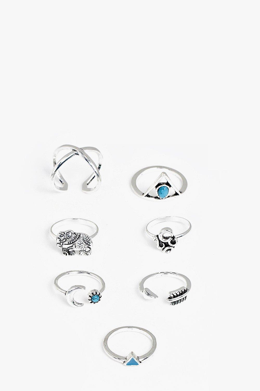 Bella Lot De 7 Bagues Argentees Lune Et Etoiles Boohoo